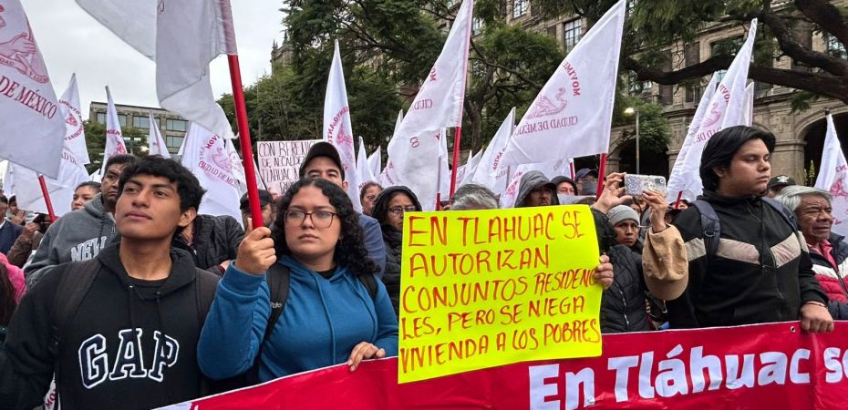 Más de 2 mil habitantes de Tláhuac protestan hoy en “La Mañanera” de Claudia Sheinbaum para solicitarle su intervención ya que Berenice Hernández, alcaldesa de Tláhuac, se opone a que las familias pobres tenga vivienda.