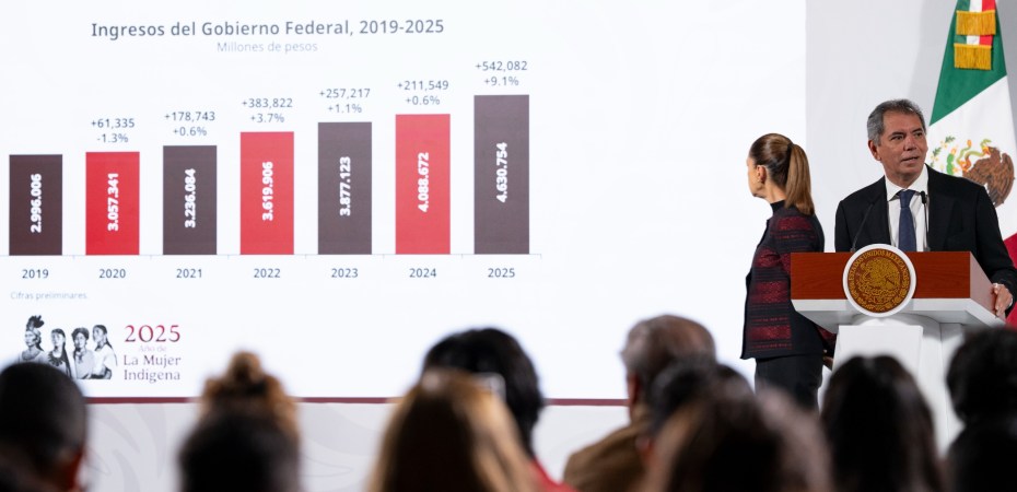 La meta de ingresos para el 2026 se estiman en 6.5 billones de pesos, un incremento de 4.3 por ciento; la mejora en los ingresos implica el no crear nuevos impuestos.
