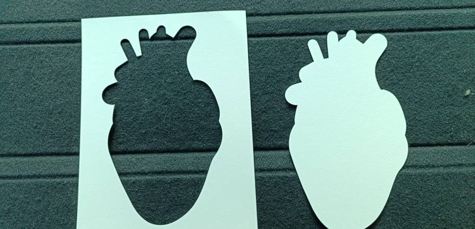 La organización produjo un soporte con forma de corazón de tamaño carta en un papel artístico profesional Stonehenge Aqua de 300 gr. el cuál será entregado a los Artistas participantes para que realicen libremente su obra sobre el mismo.