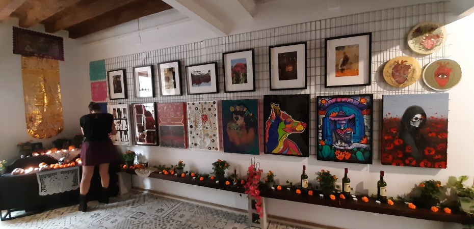 “Es un honor poder presentar nuestra cultura, qué mejor manera que poner una ofrenda de muertos con todos sus elementos en un estudio de arte para que la vean los visitantes, junto con obras de artistas europeos Cada obra manifiesta la visión de la muerte. Llamó la atención el trabajo de Victoria Tsekidou, por ver cómo se desplaza el rostro de su cuadro pasando de la vida a la muerte. Ana Cortés (Bosska) presenta un trabajo realizado sobre el tema de Pedro Páramo.