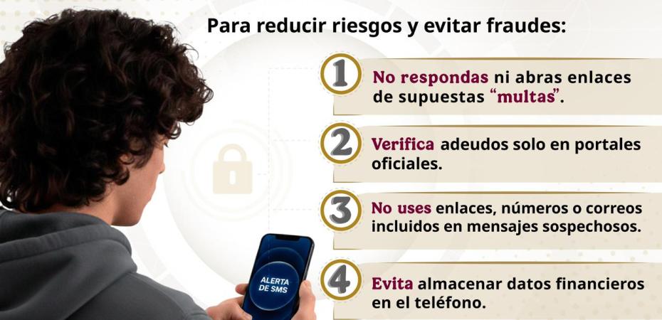 • No responder ni dar clic en enlaces recibidos por SMS relacionados con multas de tránsito.