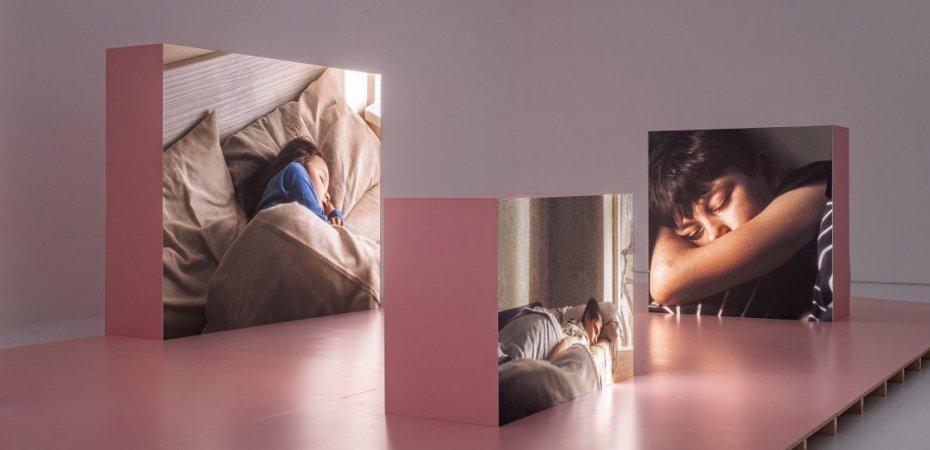 La tercera obra de la muestra, “You Shouldn’t Have to See This [No deberías tener que ver esto]” (2024) –reconocida con el Premio Curatorial de OFFSCREEN París– es una videoinstalación de seis canales que, marcada por el silencio, presenta a niños y niñas ucranianas mientras duermen.