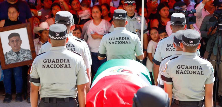 JOPALA, Pue.- Con el fin de reconocer su entrega a México, elementos de la Guardia Nacional despidieron con honores al sargento segundo Juan Vázquez García, quien murió en cumplimiento de su deber durante el operativo que se llevó a cabo en el estado de Jalisco.