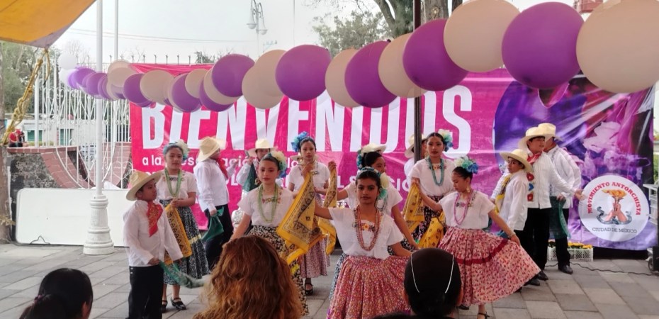 Con el objetivo de fomentar el arte y la formación cultural entre los mexicanos, el Movimiento Antorchista realizó una presentación cultural en la explanada del pueblo de San Juan Ixtayopan, en la alcaldía Tláhuac, donde vecinos de la comunidad pudieron disfrutar de un programa artístico con poesía, canto y bailes folclóricos.