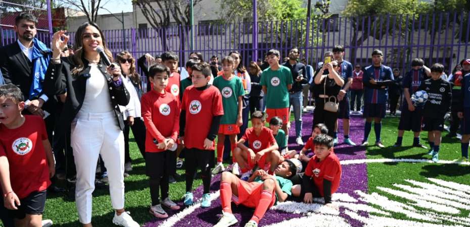 La alcaldesa Alessandra Rojo de la Vega entregó a jóvenes futbolistas de Santa María Insurgentes la rehabilitación de una cancha de fútbol en el Parque Sándalo, un espacio que vuelve a estar en condiciones para entrenar, convivir y hacer comunidad, a menos de 80 días para que inicie el Mundial de 2026 en la ciudad.