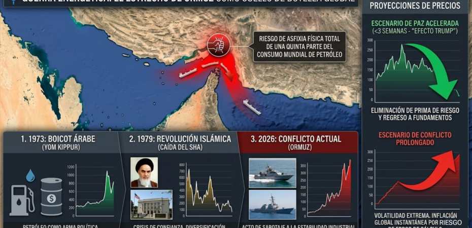 Sin embargo, la actual coyuntura en el Estrecho de Ormuz presenta una peligrosidad mayor: mientras que en el 73 el desafío era principalmente de suministros y embargo comercial, en 2026 el riesgo es una asfixia física total en un cuello de botella por donde transita una quinta parte del consumo mundial de petróleo. El cierre de este paso no solo implicaría un desabasto logístico, sino un colapso sistémico en las cadenas de valor de una economía globalizada que es más interdependiente de lo que fue hace cinco décadas. La tensión actual sugiere que un bloqueo en Ormuz no es simplemente un «castigo» a Occidente, sino un acto de sabotaje a la estabilidad industrial global que dejaría al boicot de los setenta como un mero ensayo histórico frente a una parálisis de escala incalculable.