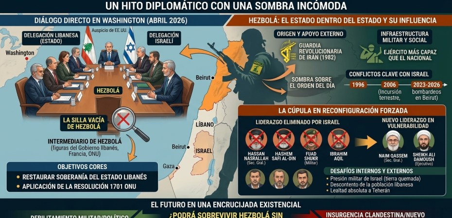 Paz: La reanudación del diálogo entre Líbano e Israel en abril de 2026 marca un hito diplomático sin precedentes, por primera vez en décadas las conversaciones directas en Washington parecen ignorar la silla de Hezbolá. Mientras los gobiernos formales intentan delinear una paz duradera bajo el auspicio de Estados Unidos, la organización chií observa desde la periferia de la mesa oficial, aunque su sombra sigue proyectándose sobre cada punto del orden del día. Este acercamiento gubernamental busca restaurar la soberanía del Estado libanés y aplicar la resolución 1701 de la ONU, planteando una interrogante sobre si es posible sellar un pacto de esta magnitud sin el consentimiento del actor armado más poderoso del país.