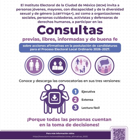 Convoca IECM a grupos de atención prioritaria de CDMX para participar en foros informativos y consultivos