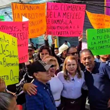 Ministra Loretta Ortiz y líder Elvia Díaz, en el barrio de La Merced