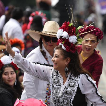 Clara Brugada encabezó Desfile de Día de Muertos de la Ciudad de México