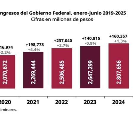 Ingresos del gobierno federal crecen 10.3% en el primer semestre