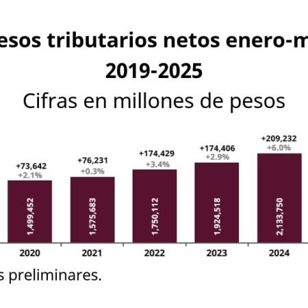 Recaudación tributaria alcanza 2.4 billones de pesos,crece 8.8%