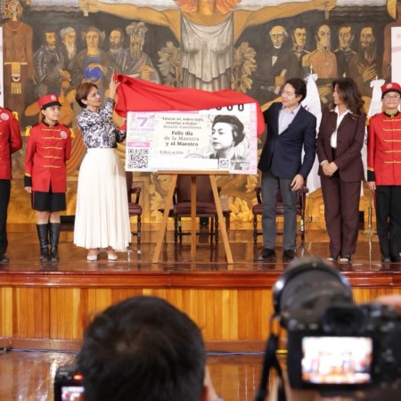 Conmemora Gobierno a maestr@s del país, con emisión de Estampilla Postal y Develación de Billete de Lotería