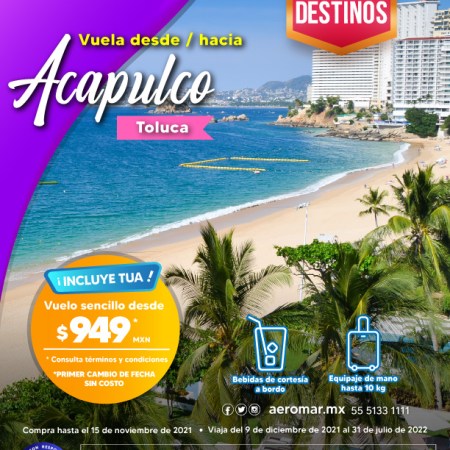 Aeromar reiniciará operaciones en ruta que conectará a Toluca con Acapulco