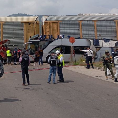 Mantienen labores tras choque de tren y autobús en Atlacomulco
