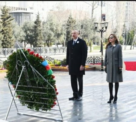 Ilham Aliyev visita el monumento al genocidio de Jodyali