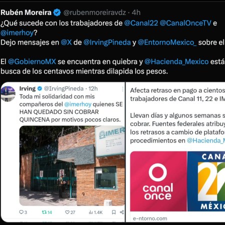 Cuestiona PRI falta de pago a trabajadores de Canal Once, Canal 22 e IMER