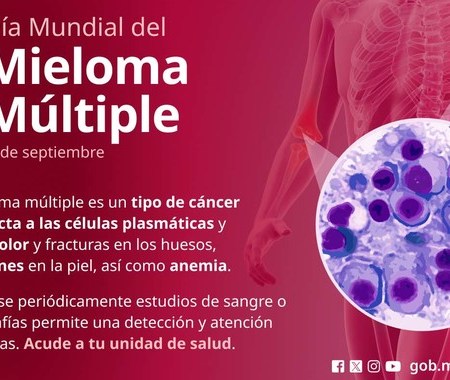 Manifestaciones clínicas de mieloma múltiple, padecimiento que puede presentarse en personas de edad media o mayores de 60 años