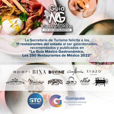 Guanajuato, cuenta con 11 restaurantes en «Guía México Gastronómico 2022»